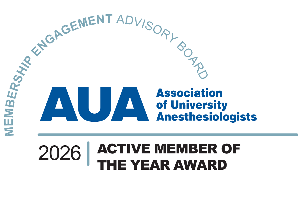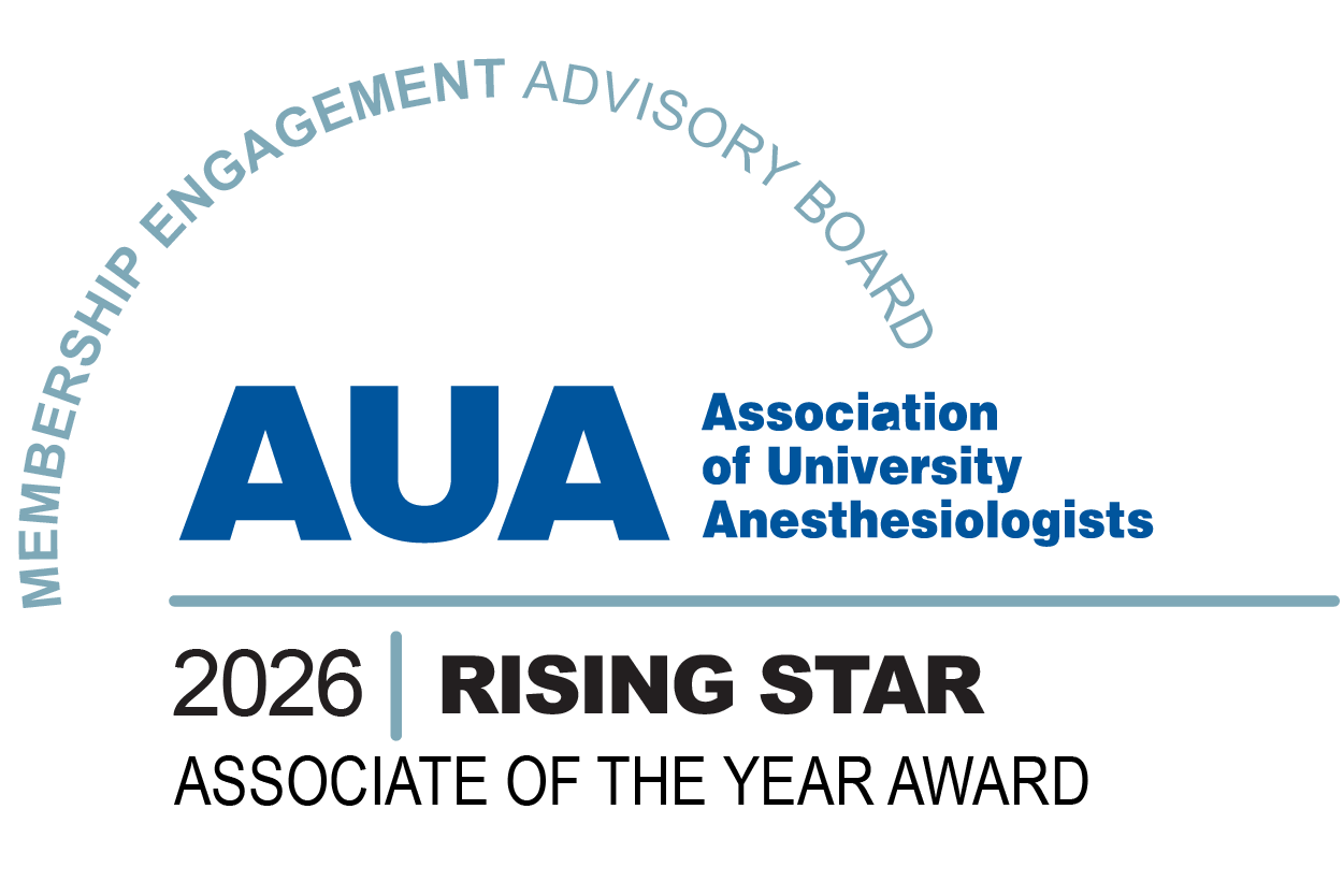 The Association of University Anesthesiologists (AUA) is delighted to present three new awards, the Lifetime Achievement Award, the Active Member of the Year Award and the Rising Star- Associate Member of the Year Award managed by the Membership Engagement Advisory Board. Any member of the AUA can submit the name of individuals for consideration for these awards. Members are also encouraged to self-nominate. Awards will be presented during the 2026 AUA Annual Meeting in Seattle!